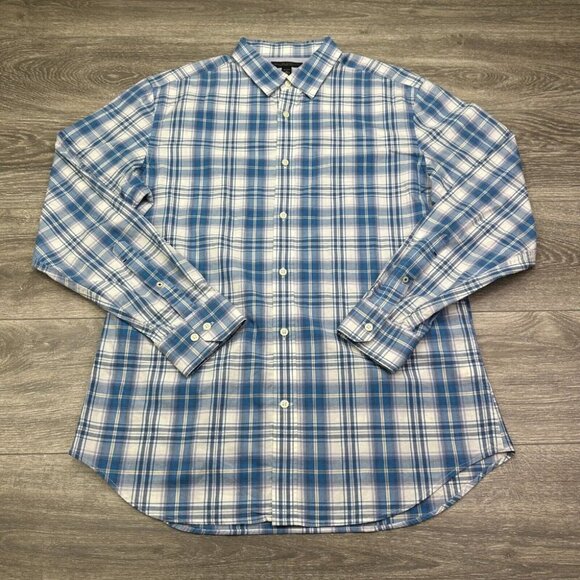 Item: Banana Republic Soft Wash Dress Shirt Men's Large Blue Plaid Button Up Preppy