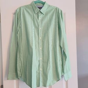Banana Republic Soft Wash Slim fit men's long sleeve dress shirt green and white striped EUC
