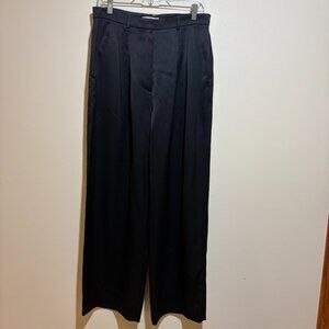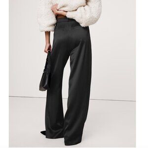 Banana Republic Soho High Rise Wide Leg Italian Satin Pant Pleated Trouser Black. Office business casual professional dress pant work.