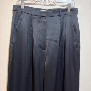 Banana Republic Soho High-Rise Wide-Leg Italian Satin Pant Pleated Trouser Black