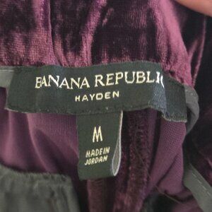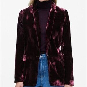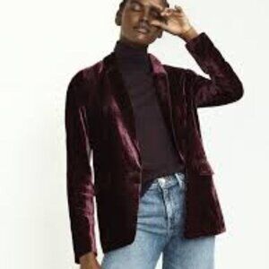 Elevate your wardrobe with this Banana Republic velvet blazer and pull-on pants set. The blazer features a one-button closure, while the pants include convenient pockets. Perfect for any stylish occasion, these pieces can be worn together or separately for versatile looks. Blazer Size 2/ Pants Size M