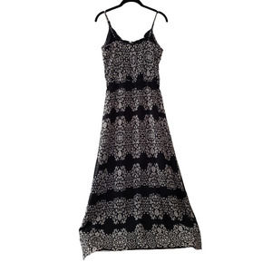 Banana Republic Spaghetti Strap Elastic Waist Maxi Dress, Black & Beige, Sz 0