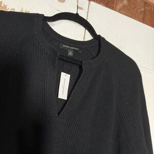 Banana Republic Split V-Neck Knit Sweater Black Size Medium NWT Knit