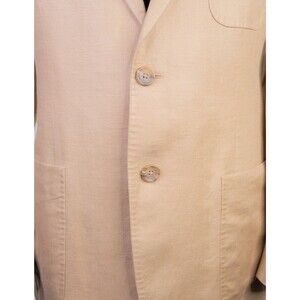 Banana Republic Sport Coat Patch Pockets Solid Beige Sz 42S 100% LINEN 2-Button