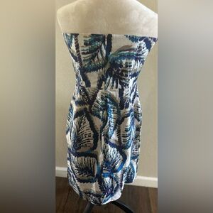 Banana Republic Strapless Blue and White tropical Patterned silk Dress size 10