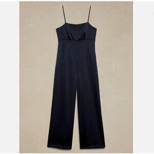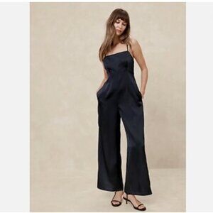 Banana Republic Strappy Satin Jumpsuit Removeable Straps Black 8 PETITE RT$140