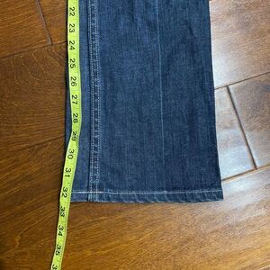 These pre-owned Banana Republic jeans are in great condition. Made with stretch fabric, they offer a snug and comfortable fit. The dark denim color offers a versatile and timeless look, perfect for any occasion. Upgrade your wardrobe with these stylish and high-quality jeans.