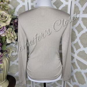 Banana Republic Stretch Tan Silk V Neck Side Ties Long Sleeve Sweater Size Small
