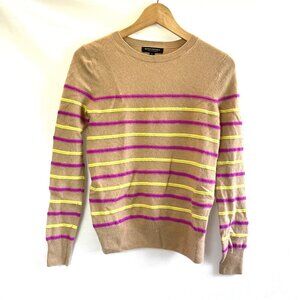 Banana Republic 100% Cashmere Crew Neck Sweater Small Camel Brown Stripes