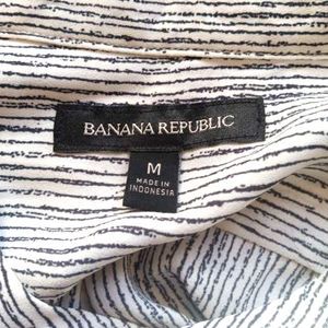 Banana Republic Striped Button Down Tuxedo Ruffles Long Sleeve High Neck Medium