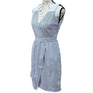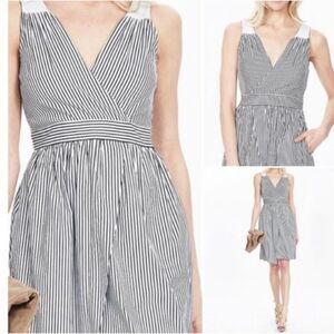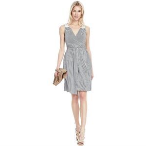 Banana Republic Striped Crossover Fit-and-Flare Dress Grey White Women's size 4