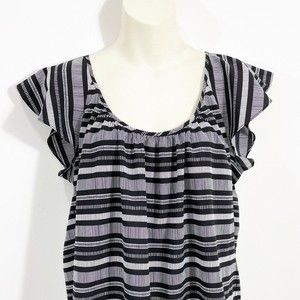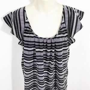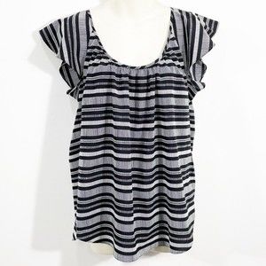 Banana Republic Striped Flutter Sleeve Sleeveless Blouse Black & White