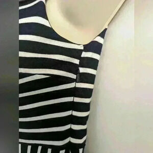Navy and white beautiful a line dress with small side zipper for perfect fit. Previously loved and in good condition. Tiny hole as pictured in last picture from price tag plastic. Scroll through pictures to see for yourself.