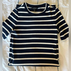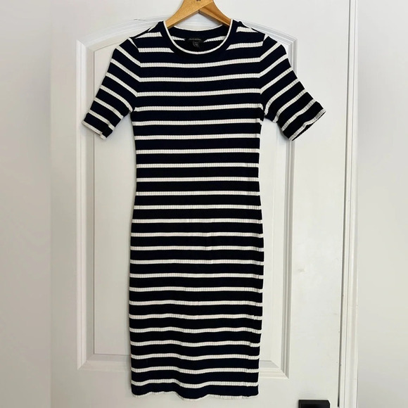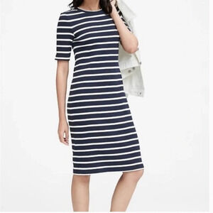 Banana Republic Striped Stretchy Midi Dress in navy & white size XSP. Length from shoulder to bottom of dress is ~36.5 inches. Dress is very stretchy.