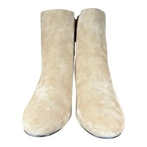 Banana Republic Suede Ankle Boots 9.5 Tan Beige Block Heel Round Toe Zip Bootie