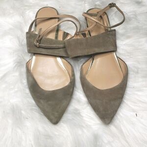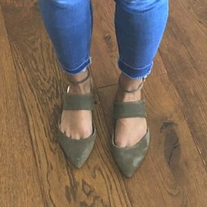 Super cute pointed toe flats with a thick band and wrap around ankle strap