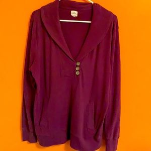 Super warm in the winter and each size even has a pocket for your hand. V- style neck with buttons (non-functional) will require a shirt or cami underneath