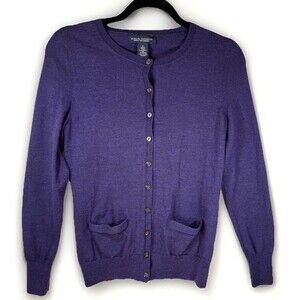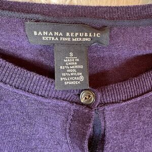 Banana Republic Sweater Cardigan Women Small Extra Fine Merino Wool Purple