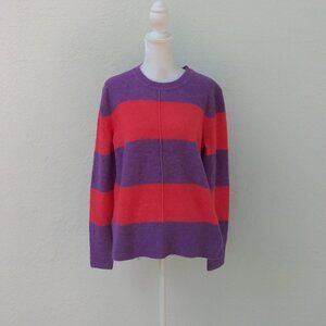 Polished Preppy Style Soooooo soft striped raspberry and purple striped Merino Wool Blend Sweater with stretch by Banana Republic Small #0454