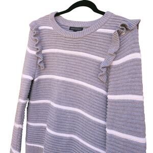 Banana Republic Sweater Crewneck Striped Ribbed Ruffle Shoulder Size Medium