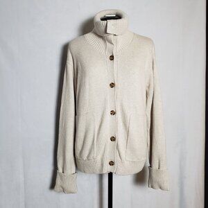Banana Republic Sweater Jacket Button Up Cardigan in Oatmeal Heather Size Large
