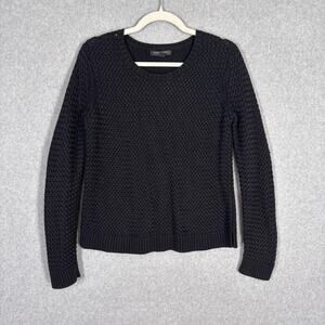 Banana Republic Sweater Medium Textured Chunky Knit Heritage Thick Minimalist Womens Black Pullover Crewneck Academia College University School Teacher Quiet Luxury