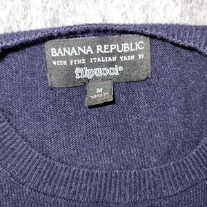 Banana Republic Sweater Men M Blue Gray Merino Wool Cashmere Blend Stripped