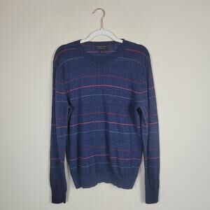 Banana Republic Sweater Men Medium Blue Stripes Merino Wool Crewneck Lightweight