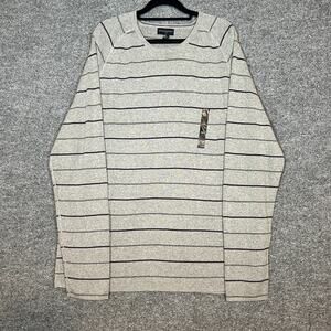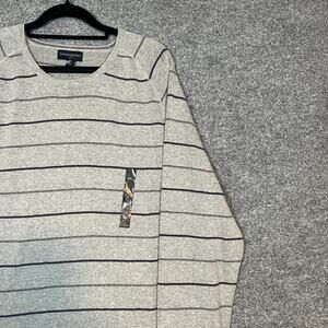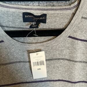 Banana Republic Sweater Mens 2XL XXL Gray Striped Pullover Crewneck Comfort NEW