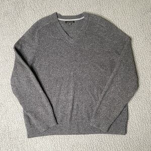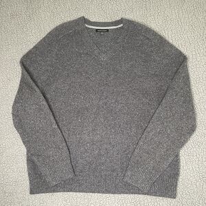 Banana Republic Sweater Men's 2XL XXL Gray Wool Blend Varsity V Neck Pullover