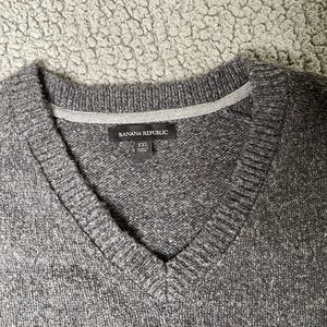Banana Republic Sweater Men's 2XL XXL Gray Wool Blend Varsity V Neck Pullover. Condition is Pre-owned. Shipped with USPS First Class.