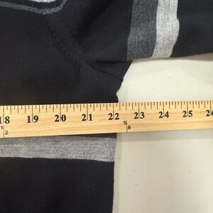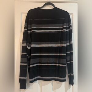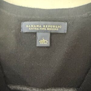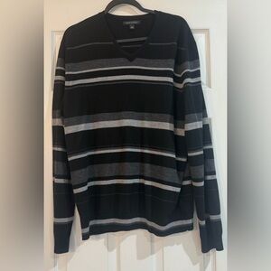 Banana Republic Sweater Mens L Black Gray Stripe Extra Fine Merino Wool V Neck