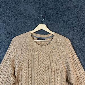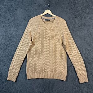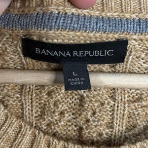 Banana Republic Sweater Mens Large Beige Tan Cable Knit Crew Neck Wool Blend
