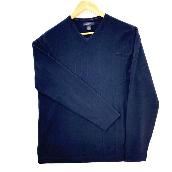 Banana Republic Sweater Mens Large Blue Fine Italian Merino Wool Preppy V-Neck