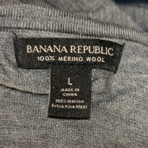 Banana Republic Sweater Men’s Large Gray 100% Extra Fine Merino Wool V neck
