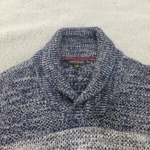 Banana Republic Sweater Mens Medium Knit Collared Blue Striped Heavy Cotton