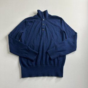 Banana Republic Sweater Mens Medium Merino Wool Quarter Button Up Pullover Blue