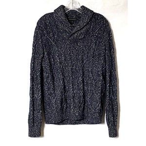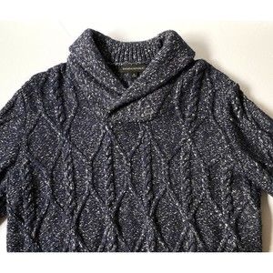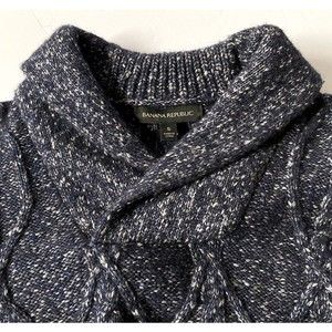 Banana Republic Sweater Men's Small Preppy Navy Cable Knit Shawl Neck Yak Hair
