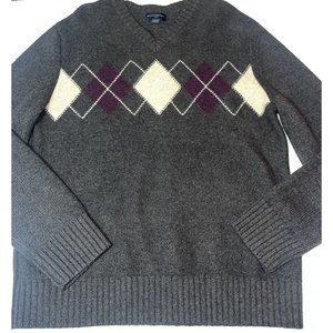 Banana Republic Sweater Men’s Size Large 100% Lambs Wool Brown V Neck Preppy