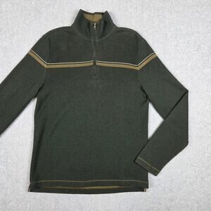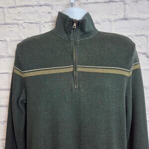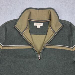 Banana Republic Sweater Mens Size Medium 1/4 Zip Mock Neck Green Stripe