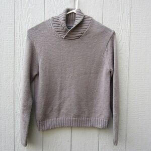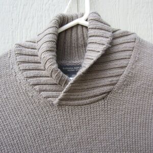 Banana Republic Sweater Mens XL Beige Shawl Collar 100% Wool Knit Heavy Grandpa