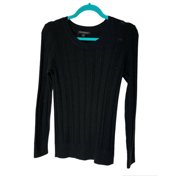 Banana Republic Sweater Size M in Black Nylon Wool Blend Long Sleeve