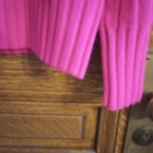 like new, excellent, measures across shoulders 19, shoulder to hem 24, across chest 22. color is a great raspberry, shows a lighter color.