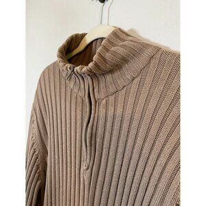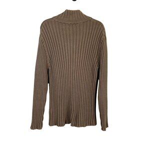 Banana Republic Sweater Women XL Brown Mock Neck Full Zip Ribbed Stretch Neutral
