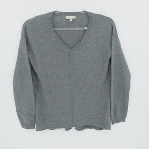 Banana Republic Sweater Womens M Gray Touch of Cashmere Preppy Minimalist V Neck