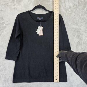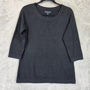 Banana Republic Sweater Womens Petite Large Black 3/4 Sleeve Button Shoulder