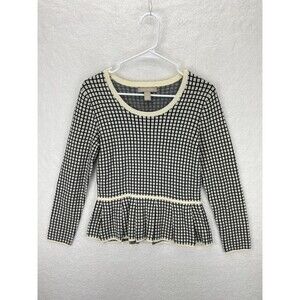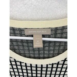 Banana Republic Sweater Women’s Size M Cream 100% Cotton Checkered Knit Casual