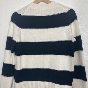 Banana Republic Sweater Womens Small Black White Striped Crewneck Pullover Knit
