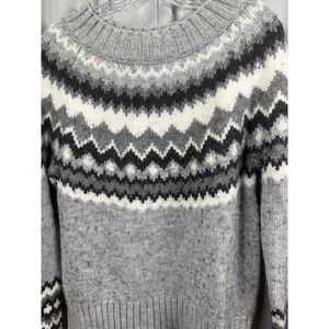Banana Republic Sweater Womens Small Gray Wool Blend Fair Isle Crewneck Pullover