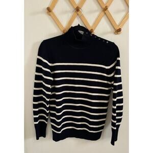 Banana Republic Sweater Women's Small Navy Striped Merino Wool Blend Mock Neck